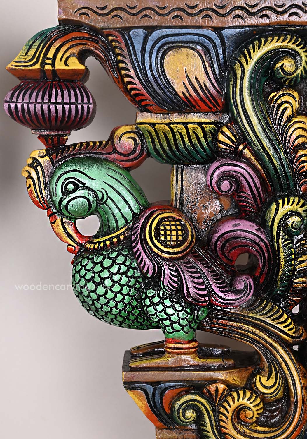 Art of Handmade Parrots Have Beautiful Wings,Lengthy tail,Its fly with shine and smooth Colourful Feathers.Artists Beautifully Carved Parrots beak.peak is Little Thick,Bend with Parrot neck.Parrots are talking and smallest Birds.Green colour gives Realistic presence at your Home.This Wooden Birds Look like Realistic Birds,standing on Base,Ready to fly on the sky.Plumages of Parrots Detaily carved,it gives additional attractiveness to this Brackets.Specially made with Bodhil type art work.