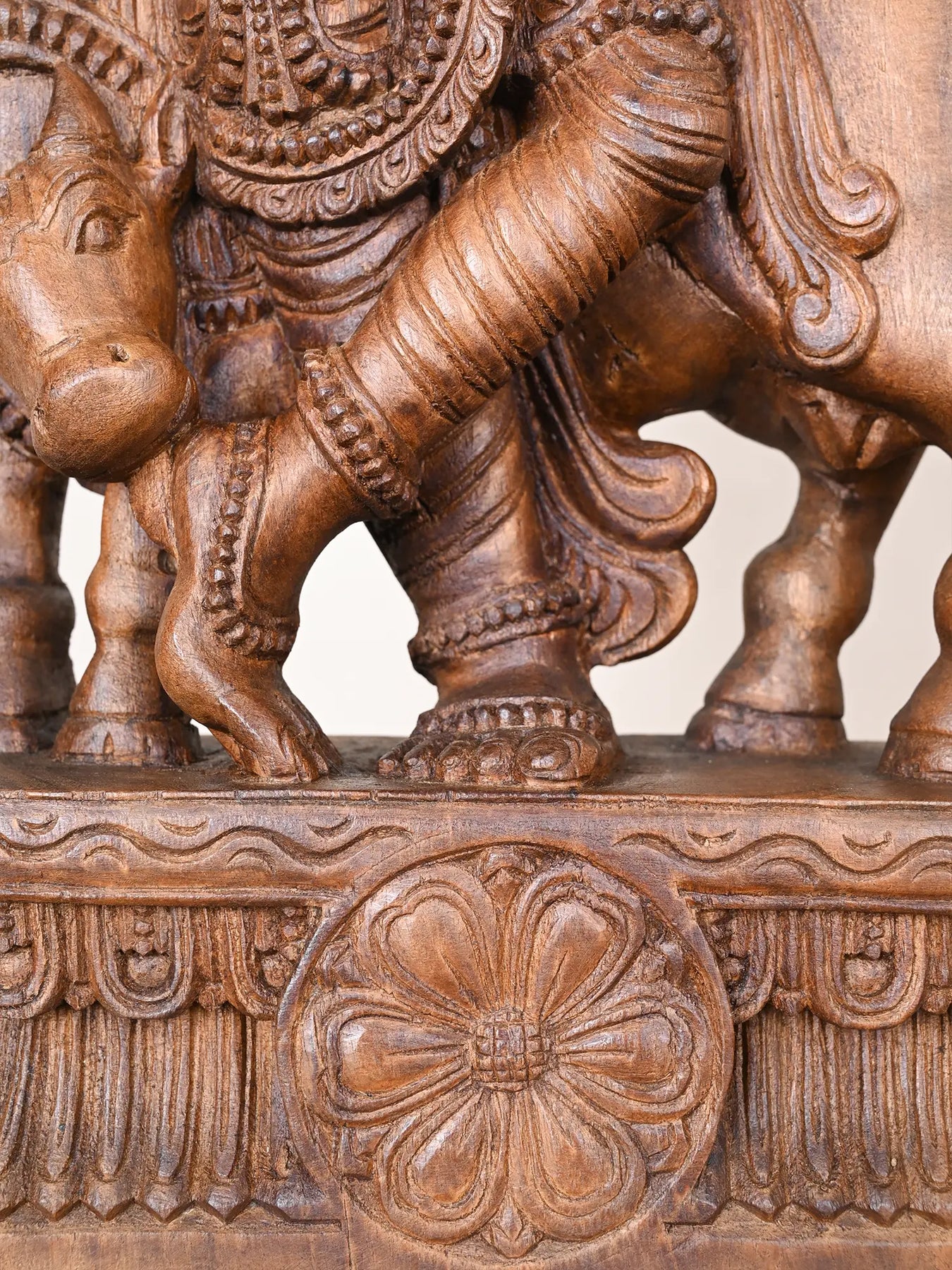 2Ft Wooden Krishna statue beautifully reflects godly love, grace, and harmony, with Lord Krishna playing the flute while standing with the sacred cow, represent peace, devotion, and spiritual joy.