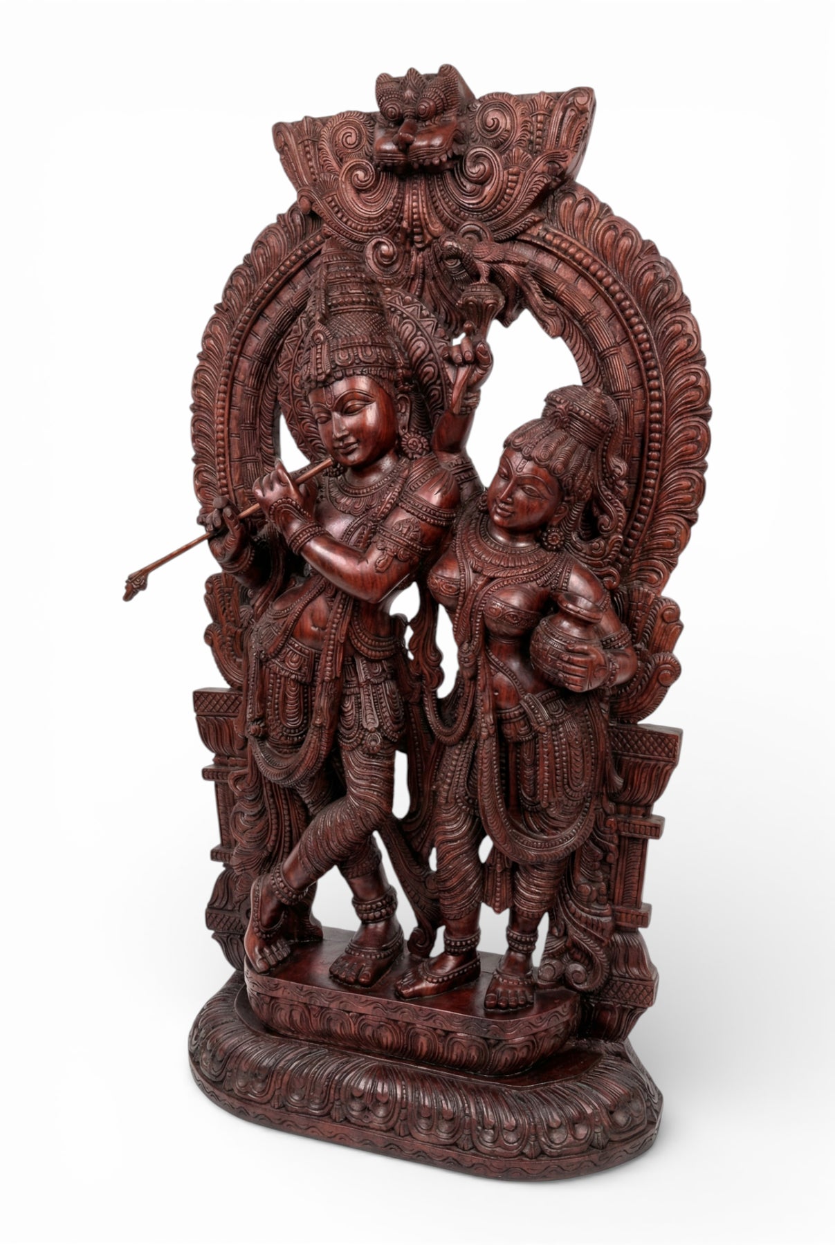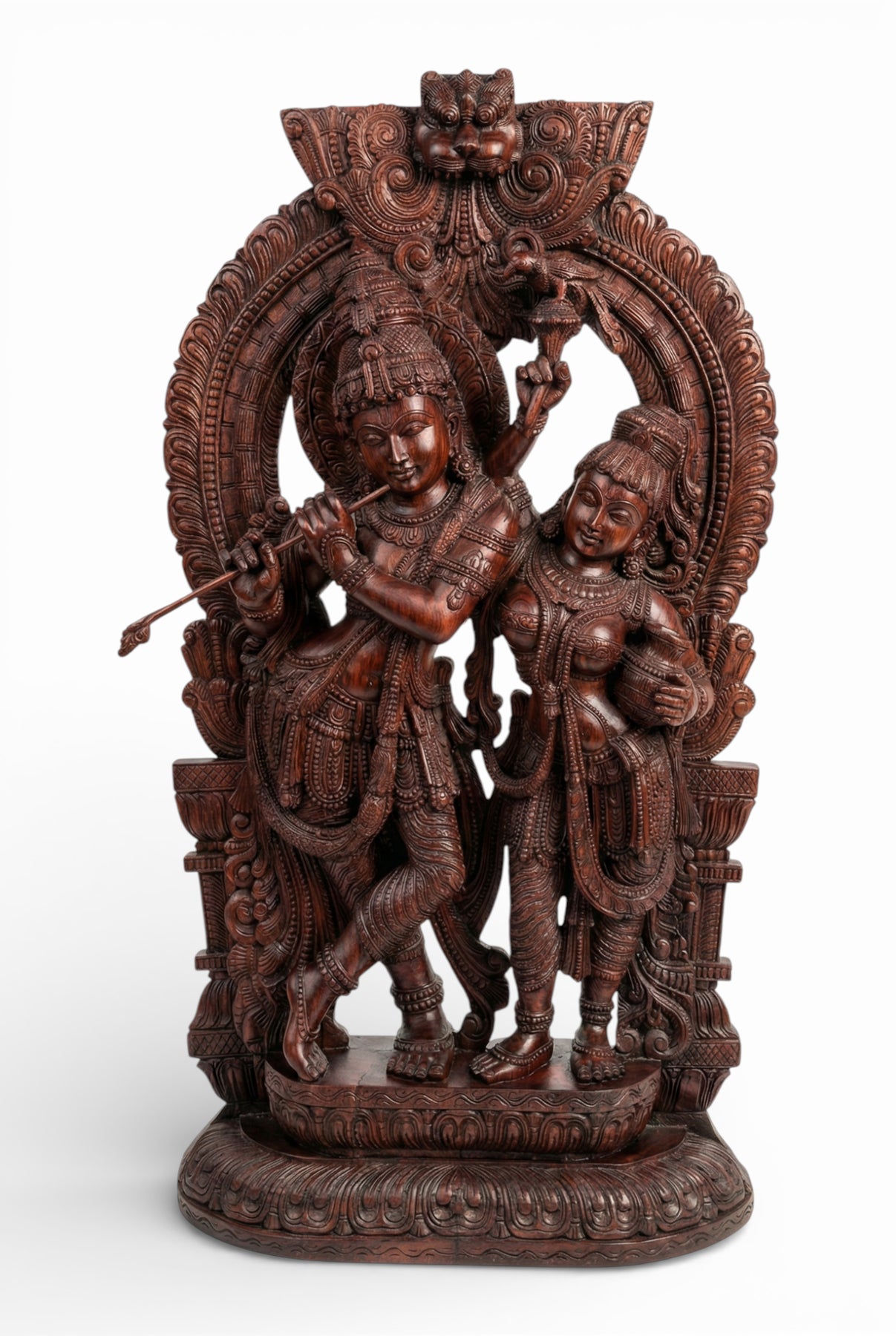 Ornate Radha Krishna Wood Carving – Mythological Art Masterpiece 7ft