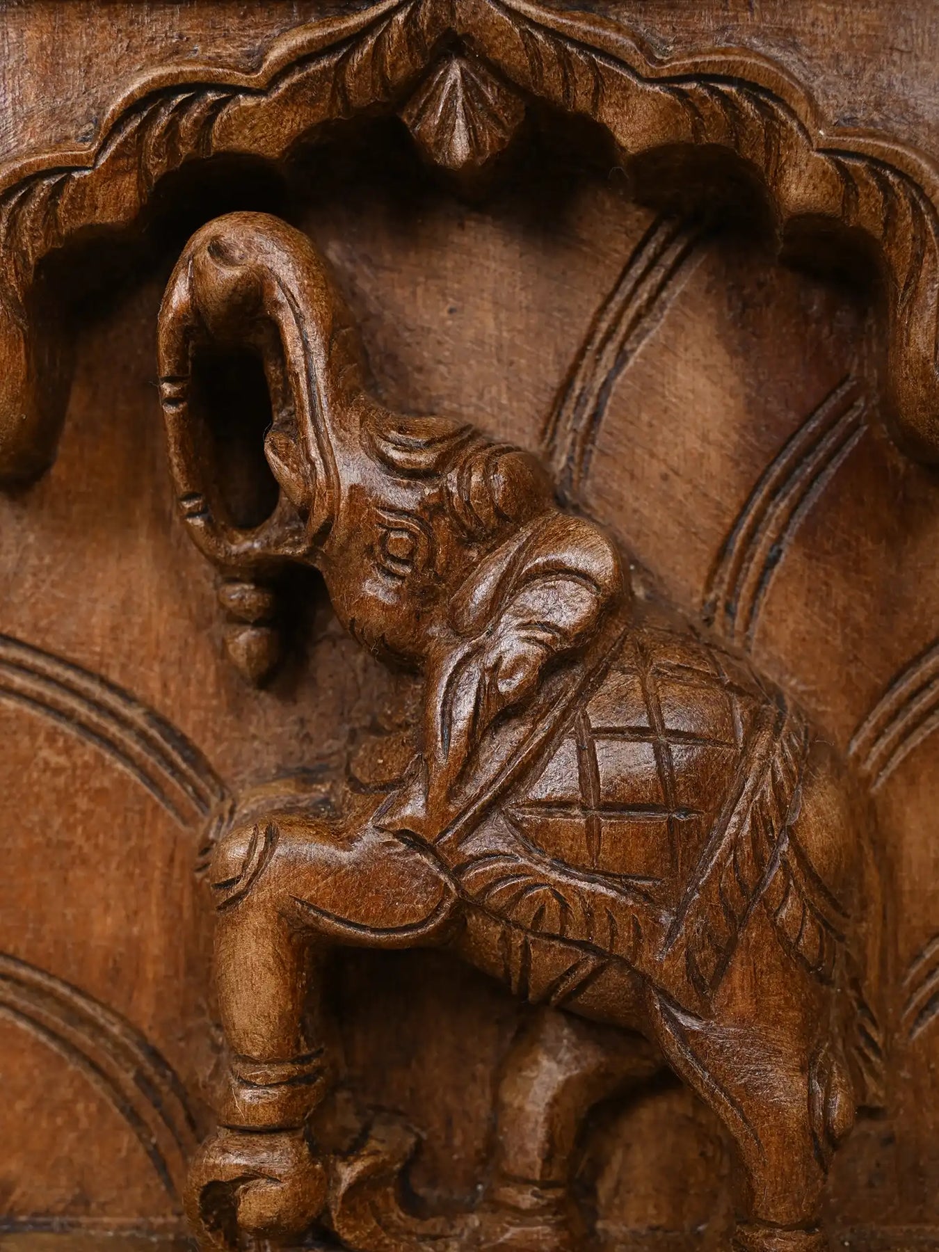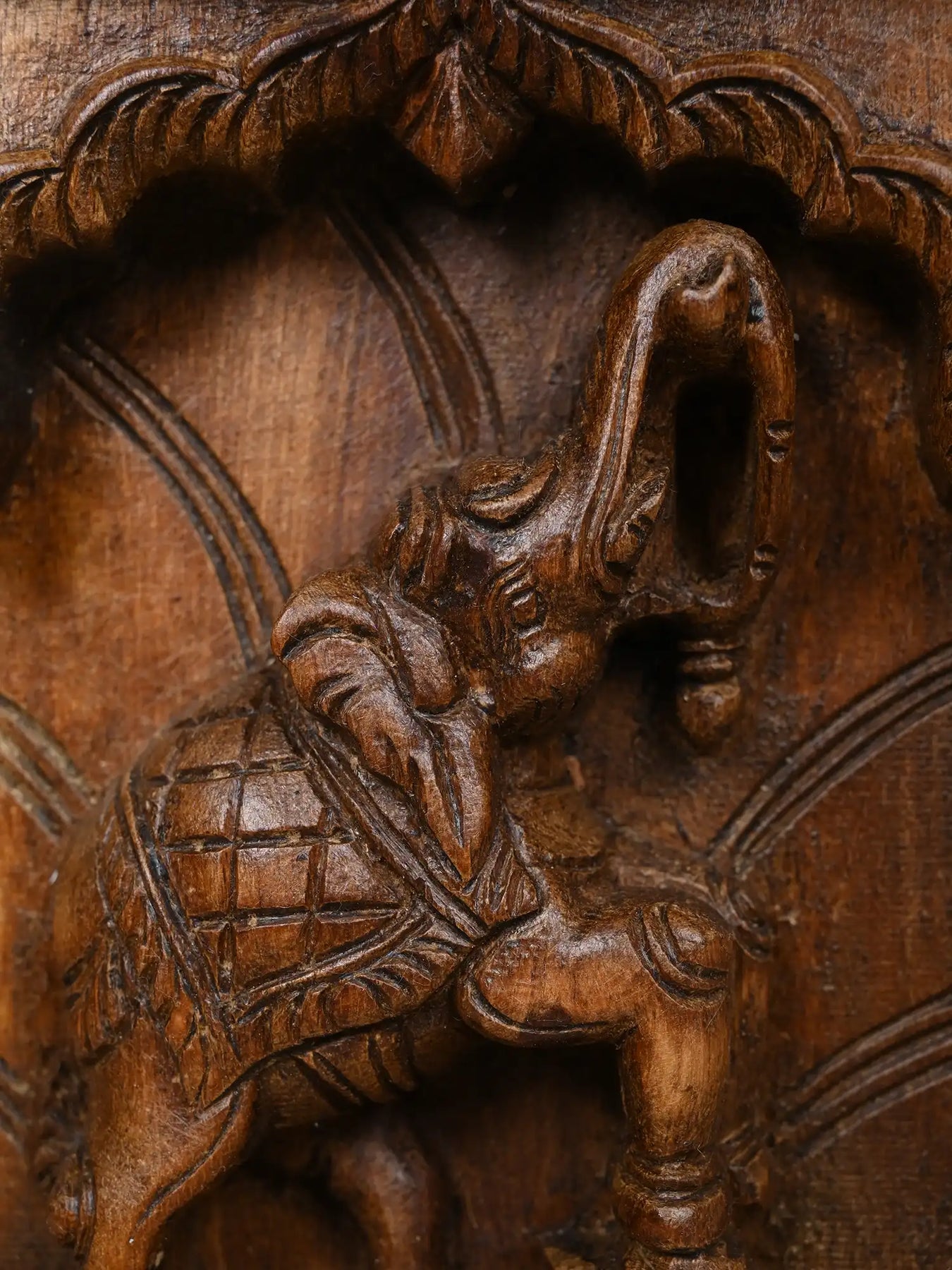 Pair of wooden Asta Lakshmi panels beautifully depicts Goddess seated on a lotus in different postures, symbolizing wealth and prosperity. Each panel features fine hand-carved details with elephants at the base, adding a divine and traditional temple touch.