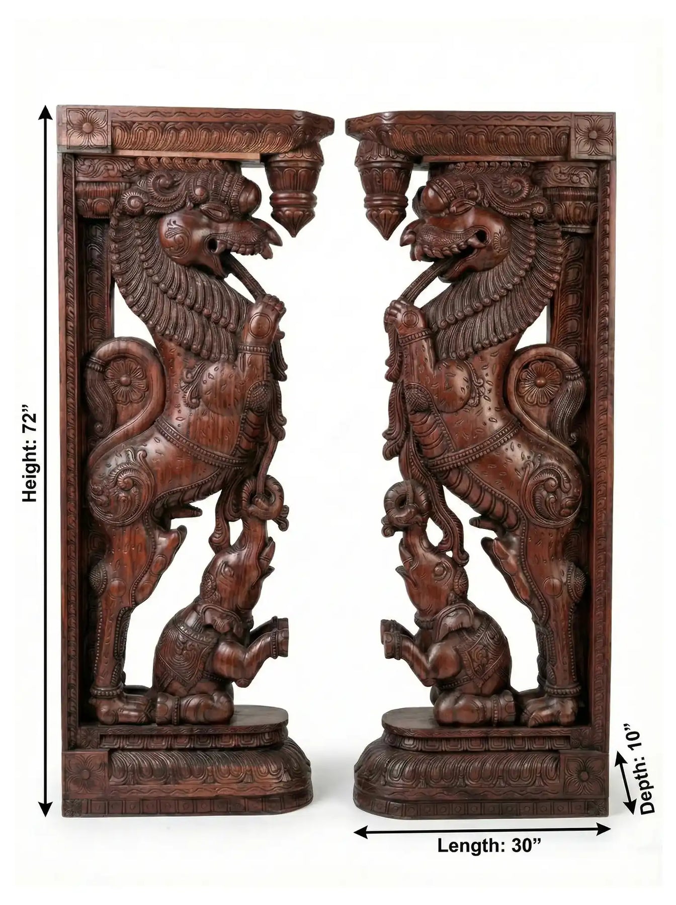 Vintage Finish Wooden Yali Brackets – Premium Temple Architecture Piece 7ft