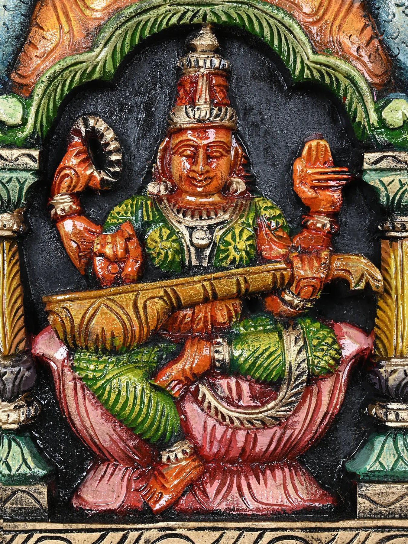 Vibrant Colored Goddess Saraswathi Wall Hanging 12"