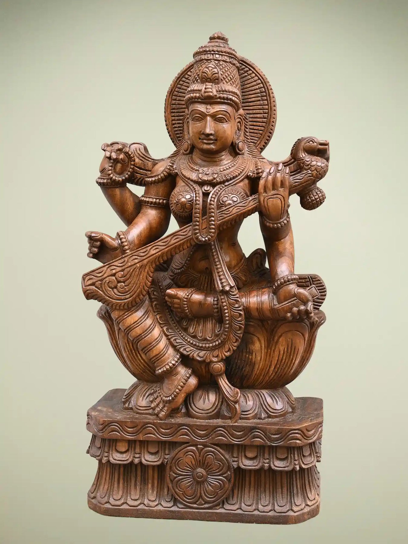 30" Wooden Goddess Saraswathi statue