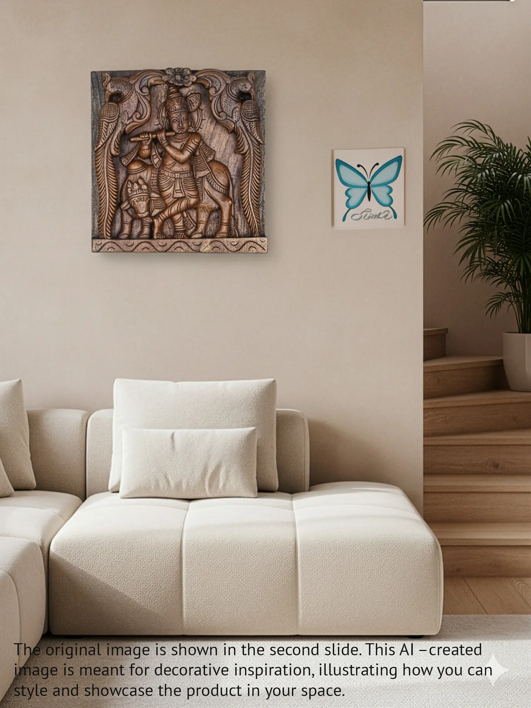 Frame Square Shape Lord Krishna With Cow wooden Wall Mount 24.5"