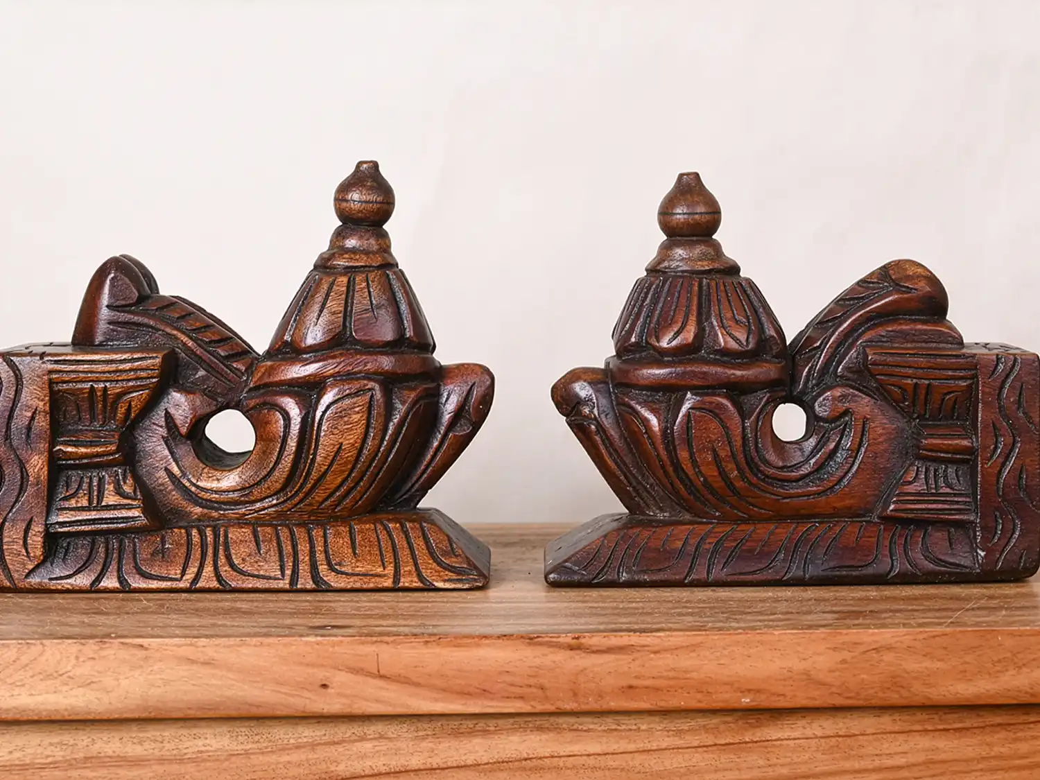 Hand-Carved Wooden Bodhil Pair 8"