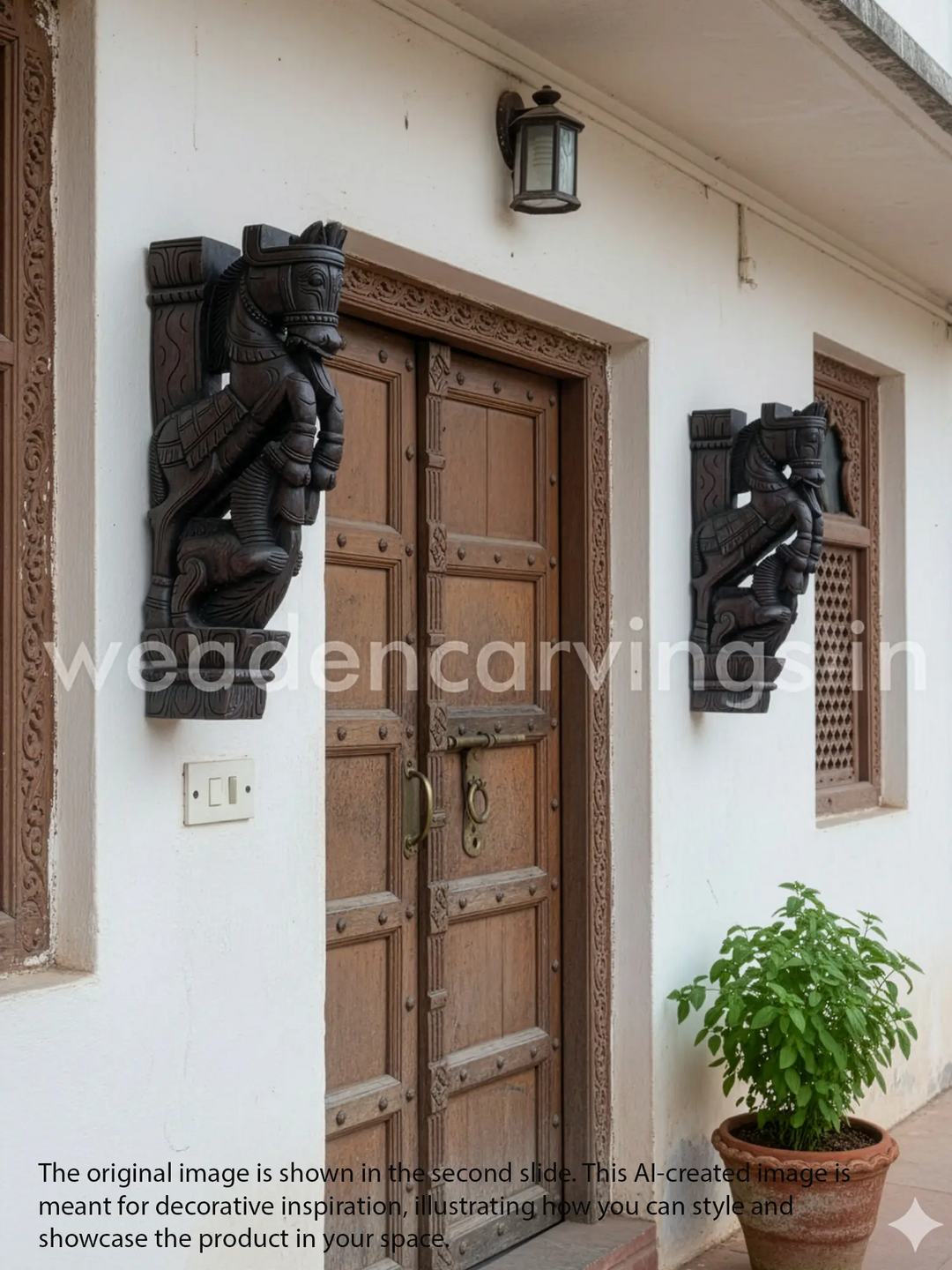 Handmade Trendy Wooden Home Decor Paired Horse Wall Brackets 13"